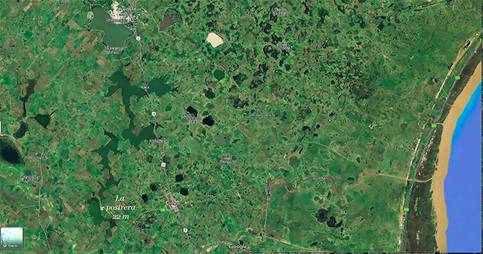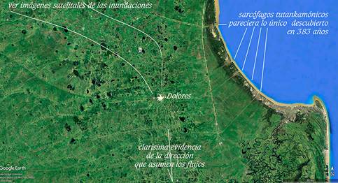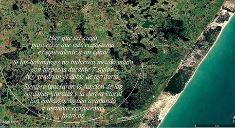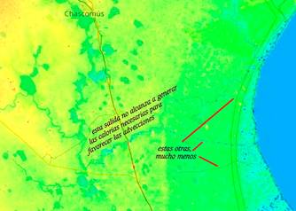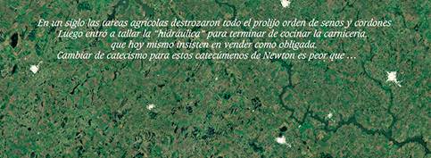 La imagen que sigue muestra la delicadeza de estos sistemas de cordones litorales tributarios al Brazo de Thetis, alterada por labranzas. Tal el caso de las obradas en cercanías de Christophersen, provincia de Santa Fe, generando la laguna La Picasa. El INA y el CONICET mudos. El Estado no resuelve estos problemas. Hace 20 años se vienen sumando en SCJPBA y CSJN estas denuncias sobre graves errores de la ciencia hidráulica que pesan en Madre Natura
