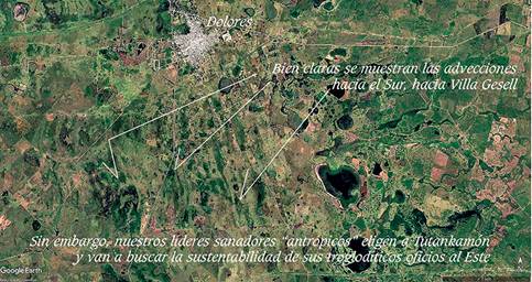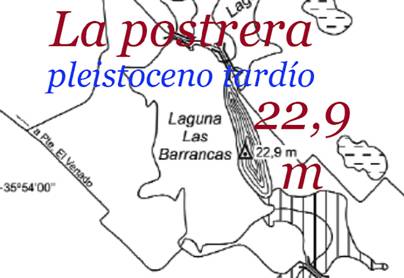 Es indudable que los delicados relieves que revelan la formación de estos suelos reclaman imágenes muy definidas de grandes áreas. Hoy las tenemos cargadas de información. Pero si la mecánica de fluidos sigue aferrada a sus catecismos gravitacionales y no dedica la menor atención a los procesos admirables que despierta el sol en Madre Natura, seguiremos cavando sarcófagos tutankamónicos. La 2ª ley de la termodinámica clásica también se descubre ciega. La imagen que sigue muestra en la parte inferior izquierda el relieve pleistocénico tardío de La postrera de 22,9 m de altura inferido al igual que todos los cordones de estas pampas como fruto de acción eólica, ajena por completo a termodinámica de sistemas naturales abiertos y enlazados; a los procesos convectivos y sus determinantes advectivos. Ajena por completo a la energía solar que el Anexo de la ley prov. 11723 reconoce en la Vida de los “ecosistemas”