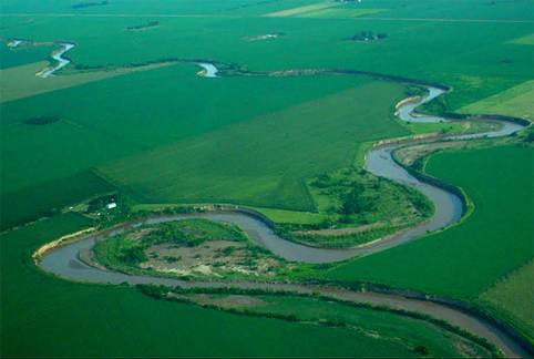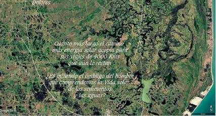 Apreciamos sus desarrollos en gran exhibición de visibilidad en 36º 05' S - 63 18' O hasta 33º14' S - 63º 14' O; y los últimos, alcanzando arranque visible en 36º 23' S - 62º 30' O. Tras la fractura terciaria generada al Sur de las sierras de San Luis, aquí descubrimos al Río 5º oficiando los servicios de prestar en el Cuaternario, el gradiente térmico determinante de las advecciones de los sistemas anteriormente señalados. Mereciendo aprecios los mutantes y obligados deslindes que fue encontrando el Río Quinto en su devenir y sucesivos compromisos con los Río Cuarto y Tercero. Vicisitudes del Salado. Salado 1 . 2 . 3 . 4 . 5 . 6 . 7 . 8 . 9 . 10 . 11 . 12 . 13 . 14 . 15 . 16 . 17 En particular y ya llegados a las planicies y cotas por debajo de los 200 m/s.n.m, nuestro trabajo apreciará contrastar las inferencias mecánicas atribuídas al viento (Iriondo-Kröhling), con las termodinámicas que en estos últimos años venimos en planicies advirtiendo responsables de las salidas tributarias a los cuerpos de agua marinos A esas energías convectivas acreditamos las interminables acreencias generadas por los cordones litorales que descartamos hayan sido formados por olas oblicuas; y como parte fundamental de estos ecosistemas, destacamos las baterías convectivas apropiadas en los esteros y bañados aledaños, que por costas blandas y bordes lábiles transfieren esas irremplazables energías convectivas a las sangrías mayores. Estos cambios de paradigma en mecánica de fluídos, alcanzan y sobran para contrastar los catecismos de sedimentología. Si bien es indiscutible que los transportes de suelos calizos marinos cordilleranos han estado activos por más de 10 millones de años y son los responsables de los suelos de estas pampas, en estas longitudes cercanas al inicio de las grandes planicies, las dinámicas de los transportes sedimentarios hasta hoy referidos mayormente a la acción de los vientos del SO, no son a inferir en esos términos mecánicos, sino básicamente convectivos de löss fluviales. Muy distintos aprecios energéticos caben por cierto, en lontitudes más al Oeste, frutos de desglaciaciones y sedimentos transferidos por fuertes erosiones y pendientes en las cuencas superiores, que son de estimar en términos mecánicos con un apropiado mix de energías convectivas en muchos tramos de las cuencas medias. Ya lo veremos cuando estudiemos los avatares padecidos por el río Atuel. Pero llegados a las actuales cotas por debajo de los 300 m, en la transición de energías gravitacionales a convectivas, cabe advertir este listado de episodios señalado líneas arriba, cada uno de ellos dando cuenta de muy distintas calidades y cantidades de energías. Estos cambios en cosmovisión geológica amplían límites y soportes dinámicos que en las transiciones de finales del mioceno y en las bases del pampeano lucen baches morfológicos que merecen atención.
