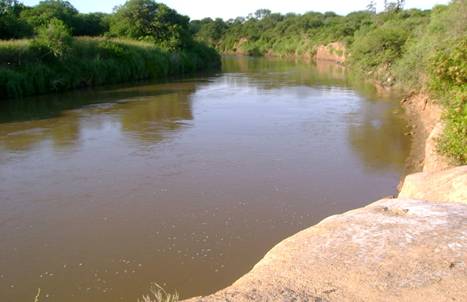 Desde aquí, con curso bastante divagante, el río Quinto tuerce hacia el Noreste, pasando entonces sucesivamente por las proximidades de Pehuajó, Carlos Casares, 9 de julio y Bragado confluyendo con el río Salado bonaerense en las cercanías de Mechita. Desde inicios del presente siglo la conexión superficial entre el río Quinto y el río Salado ha sido reactivada en gran medida a través del Canal Arturo Jauretche. Longitud La longitud del tramo del río Quinto cuando sólo forma una cuenca endorreica es de unos 375 km, en cambio cuando llega a confluir con el río Salado alcanza una longitud de aproximadamente 878 km. En cuanto al nombre "Popopis" o "Popopís" se cree que fue el nombre dado por una de las antiguas etnias originarias, quizás los "comechingones", quizás los het o quizás los ranqueles. Longitud: 375 (cuenca endorreica) 878 km cuando desagua en el río Salado km. Superficie de la cuenca: 34 360 km2. Nacimiento a 2.214 m de altura. El löss al Noreste del Salado ya reconoce influencias del Río Cuarto Río Cuarto o Chocancharagua El río Cuarto, Chocancharava, Chocancharagua o Conchancharava es un río que discurre por el sector centro-sur de la Provincia de Córdoba. Nace en la pendiente Este de las sierras de Comechingones; en su curso alto es llamado río de las Barrancas, recibiendo el nombre de río Cuarto al salir del pedemonte y tras confluir varios arroyos, en especial el llamado Piedras Blancas, con el Barrancas.