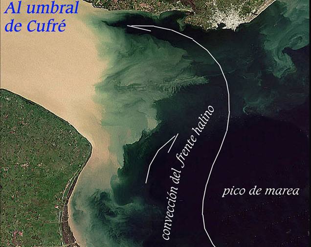 Ver a Pág 128 la penetración de una cuña salina que ignora la cuña salina con ingreso por la costa uruguaya hasta el umbral de Cufré.
